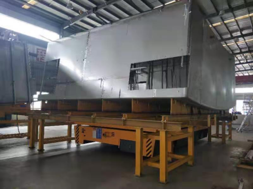 無(wú)軌轉(zhuǎn)運(yùn)車(chē)搬運(yùn)水箱現(xiàn)場(chǎng)案例
